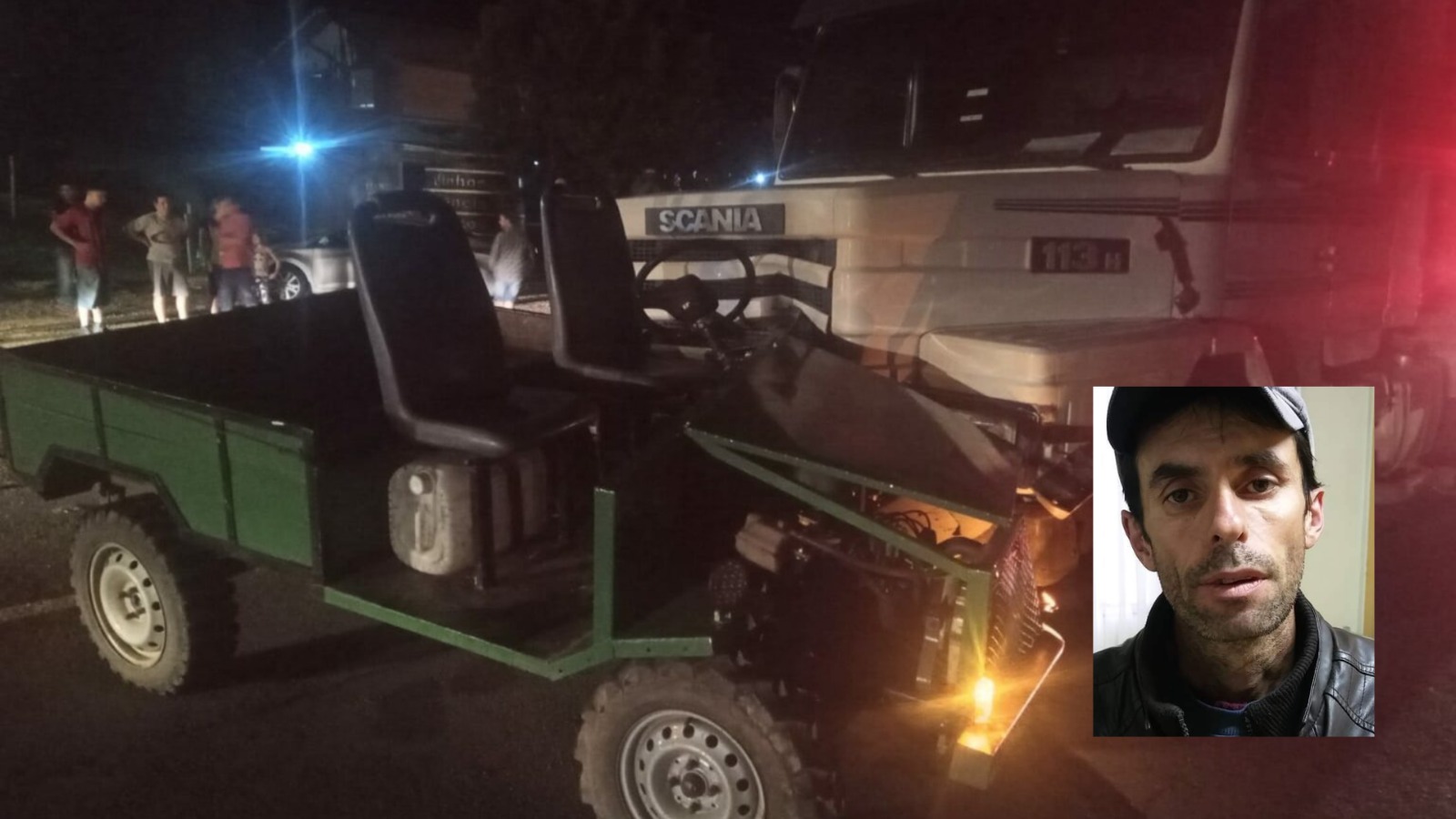 Homem de 46 anos era caroneiro do veículo e foi arremessado para a pista no momento da colisão com um caminhão Foi identificada como Adriano Luiz Loss, 46 anos, a vítima do acidente envolvendo um caminhão Scania e uma tobata na noite desta terça-feira, em São Marcos.