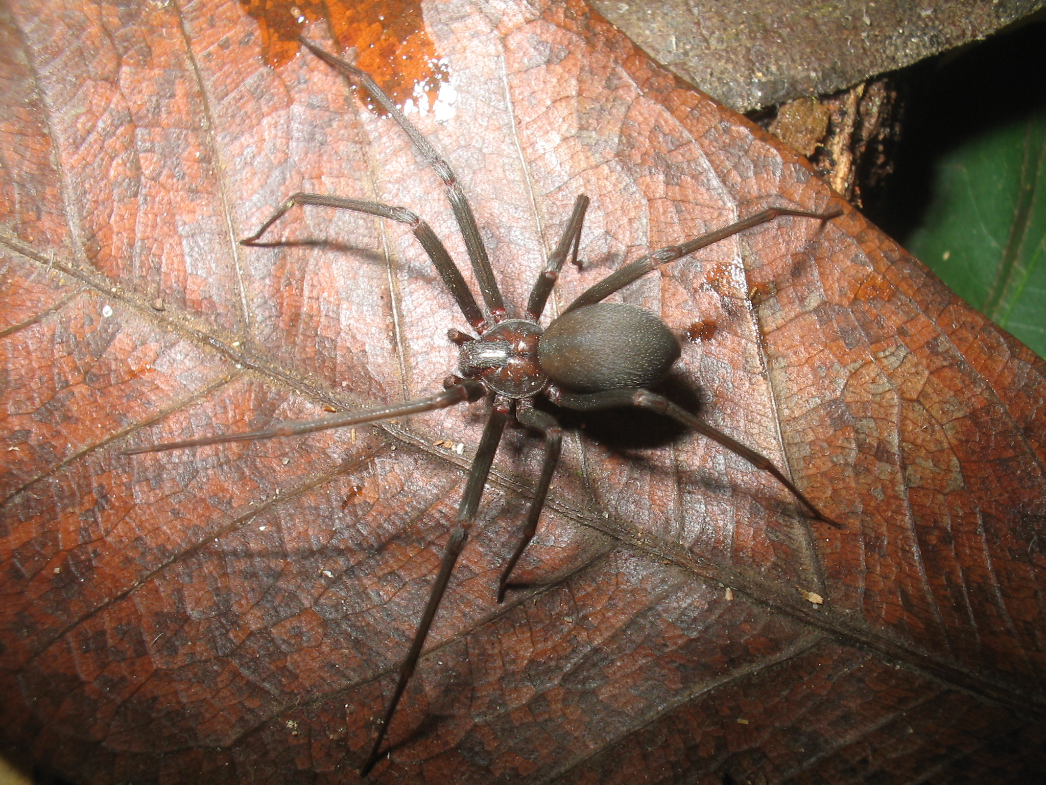 - Viúva-negra (Latrodectus)– Não é agressiva. A fêmea pode chegar a 2 cm e o macho de 2 a 3 cm. Tem atividade noturna e hábito de viver em grupos. Faz teia irregular em arbustos, gramíneas, cascas de coco, canaletas de chuva ou sob pedras. É encontrada próxima ou dentro das casas, em ambientes sombreados, como frestas, sob cadeiras e mesas em jardins.